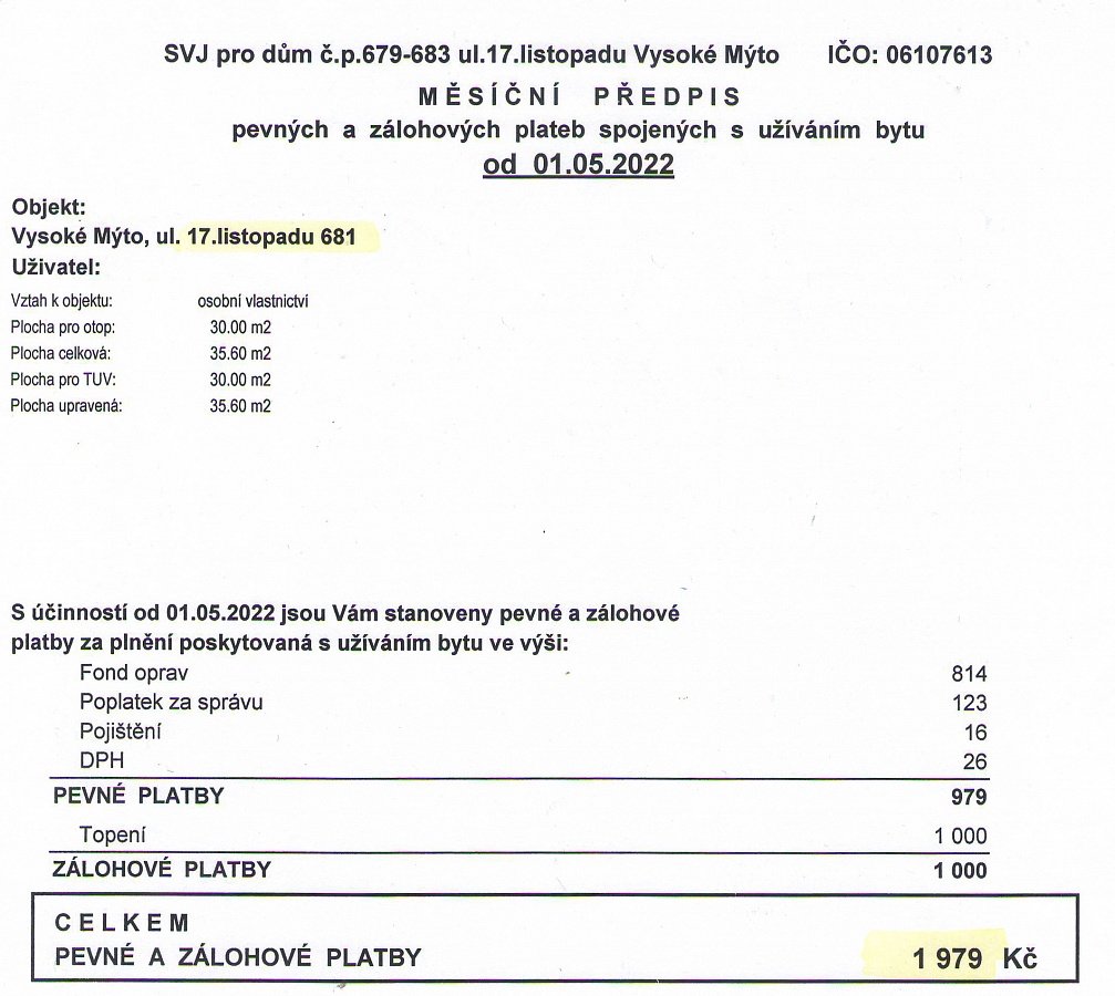 Byt o velikosti 1 + 1 o celkové výměře cca 35,6 m2 se nachází ve druhém nadzemním podlaží zatepleného panelového domu v klidné části Vysokého Mýta, blízko nově udělaného hřiště, ulice 17. listopadu.