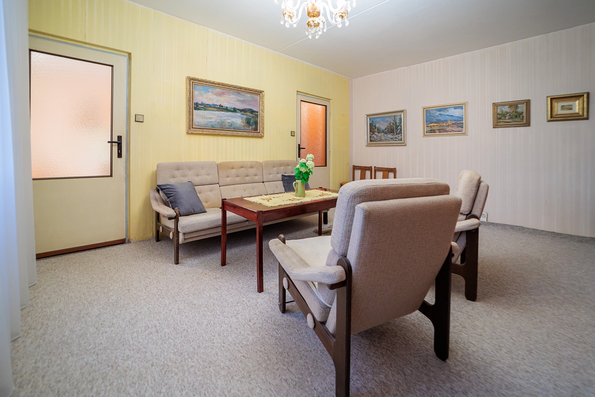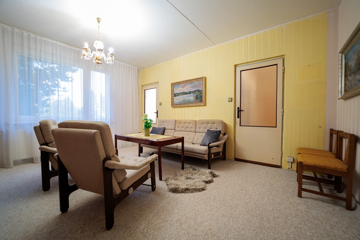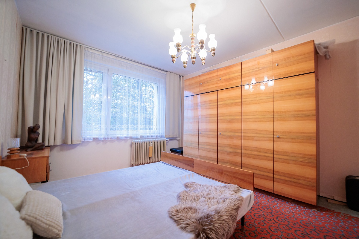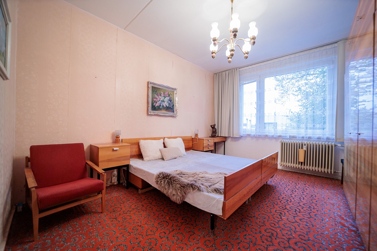 Byt je tvořen z ložnice, dětského pokoje, obývacího pokoje a kuchyně. Dále centrální chodba, koupelna s vanou, samostatná toaleta, spíž a zasklená lodžie.