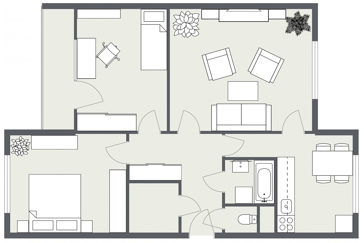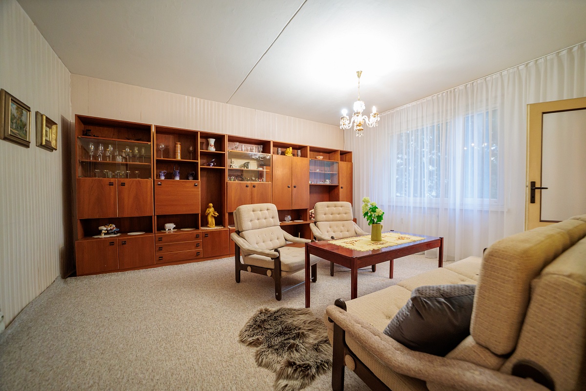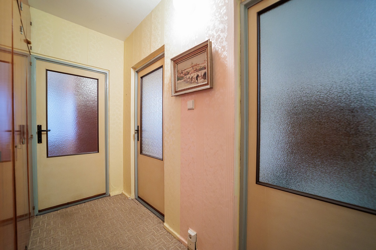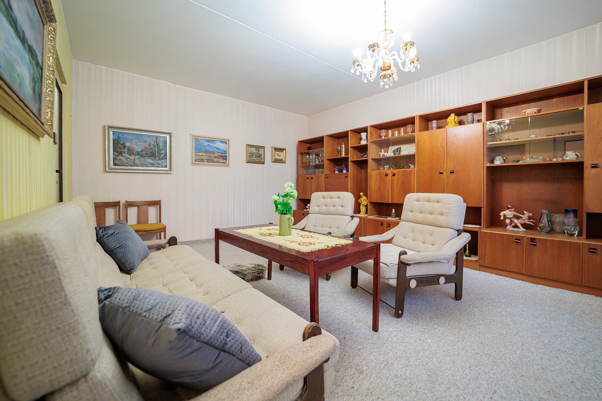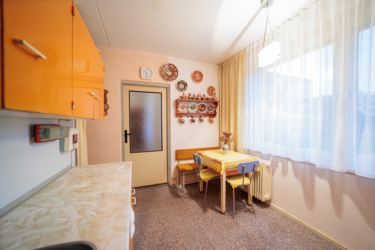 Byt je tvořen z ložnice, dětského pokoje, obývacího pokoje a kuchyně. Dále centrální chodba, koupelna s vanou, samostatná toaleta, spíž a zasklená lodžie.