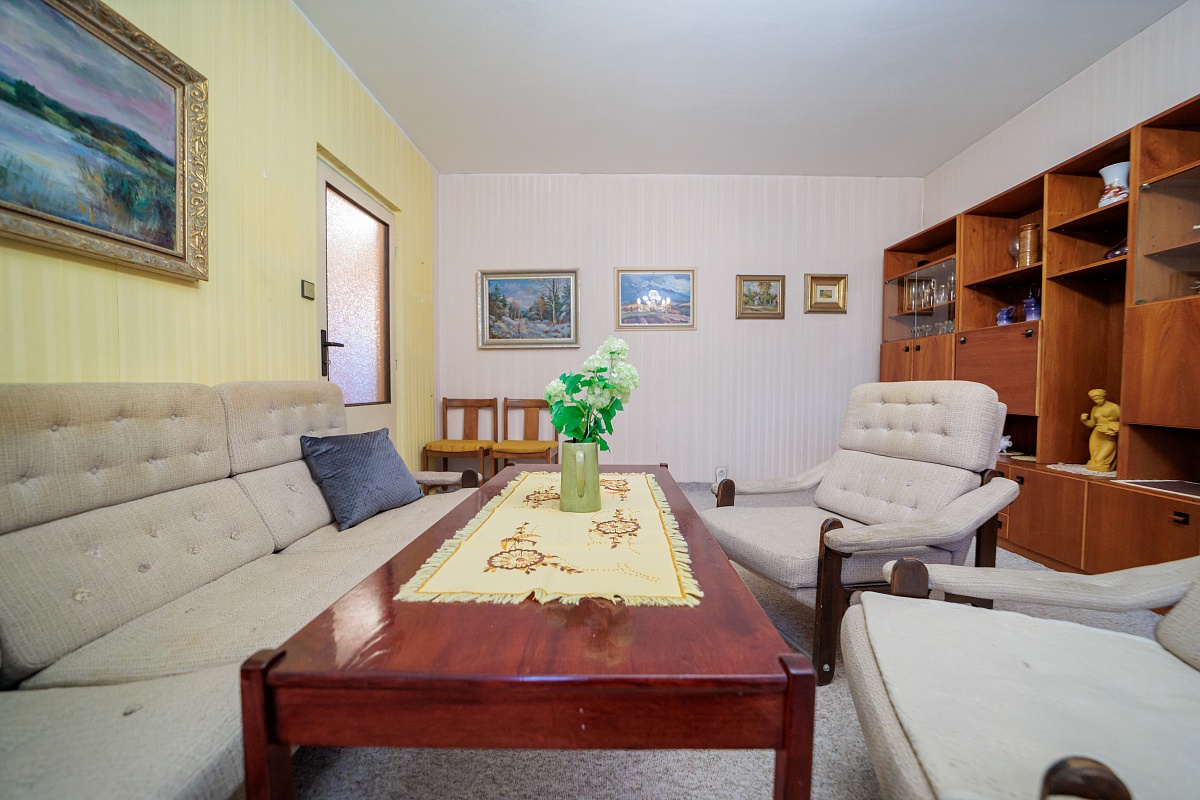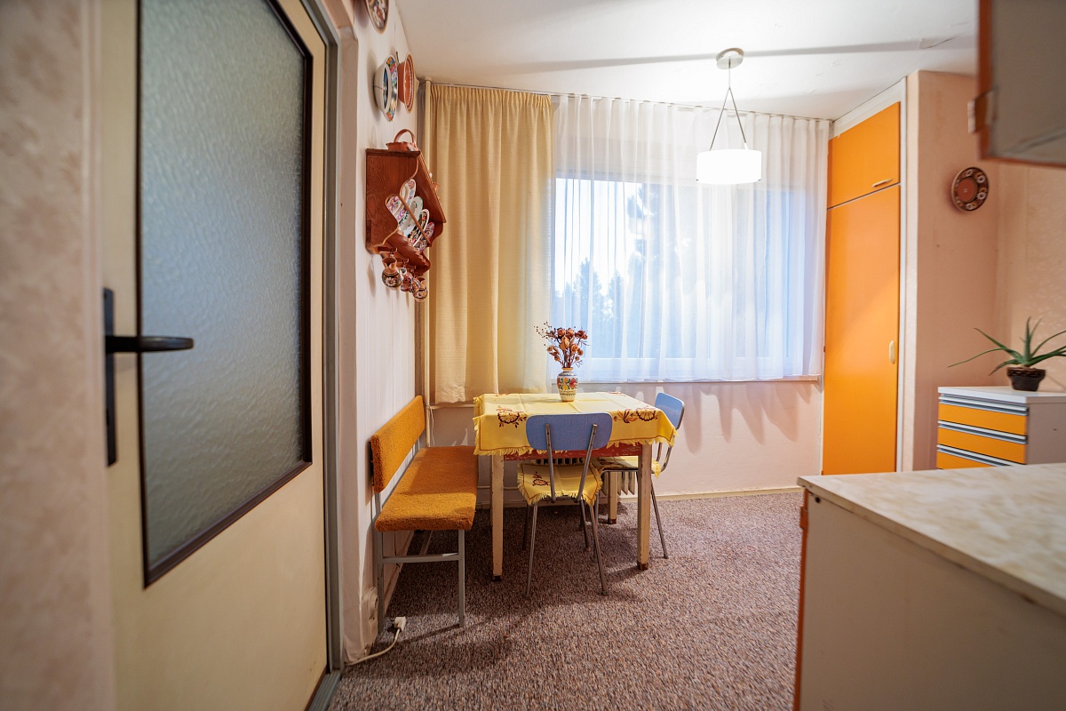 Po celém bytě jsou koberce a pod ním lino. Vytápění bytu je ústřední na vlastní plynovou kotelnu v domě. Byt má již plastová okna a veliký sklep v suterénu domu.