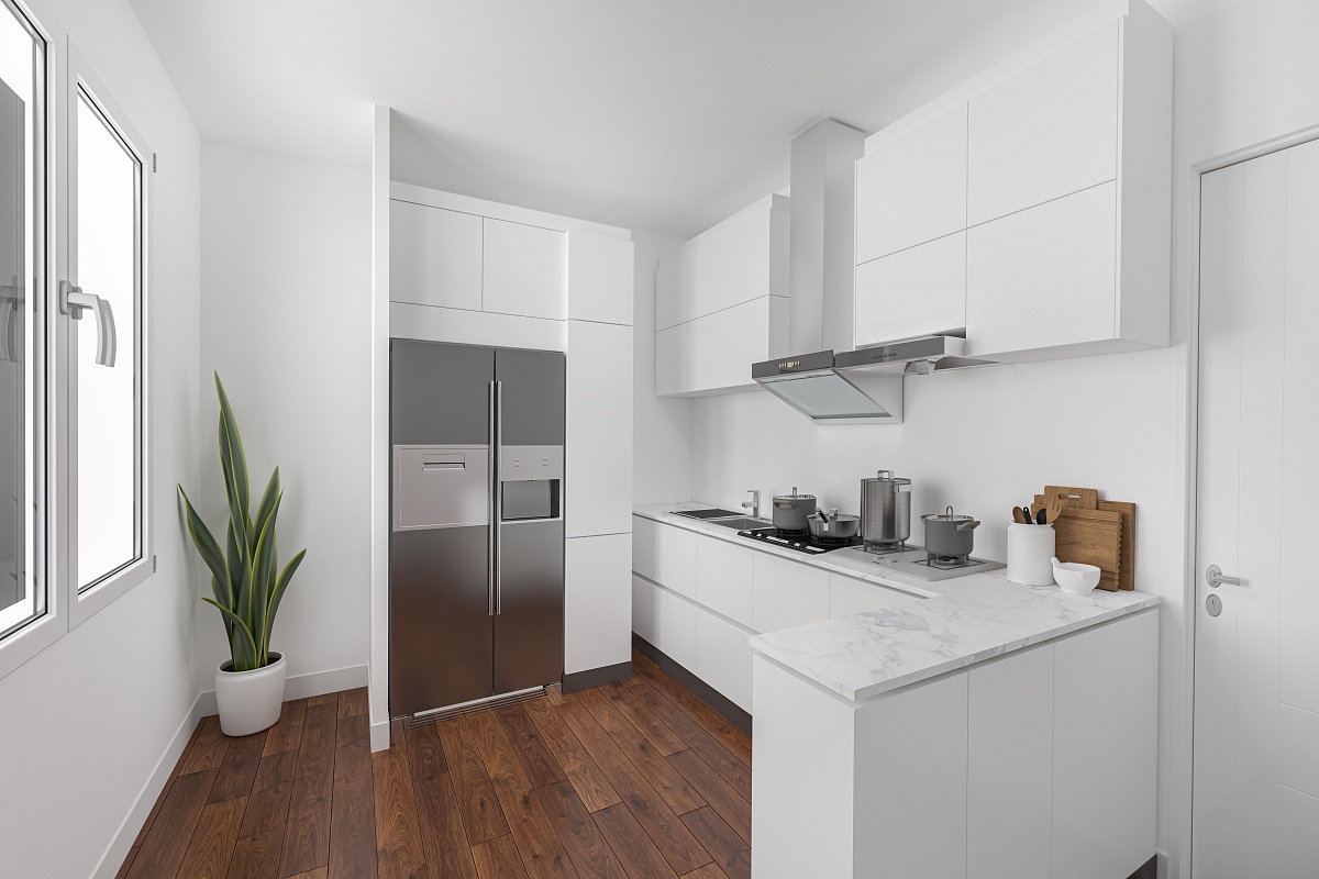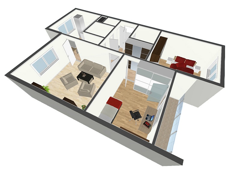 Byt je v původním stavu, pro někoho problém pro jiného příležitost, předělat si byt podle své představy. Níže máme možné vizualizace obyvacího pokoje, kuchyně a koupelny.