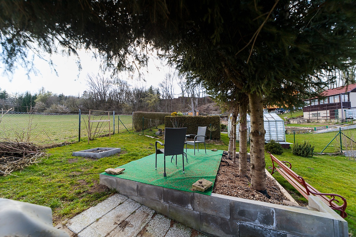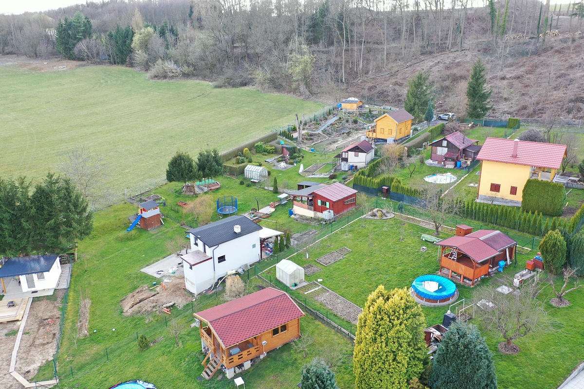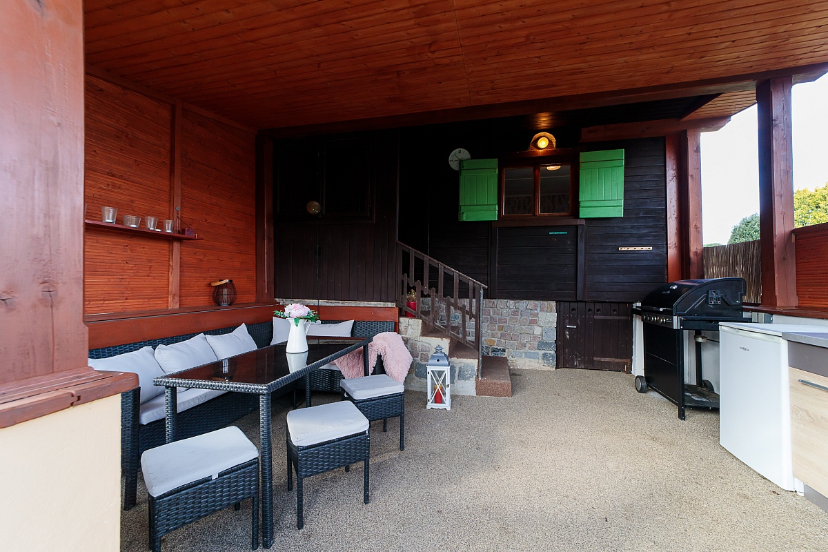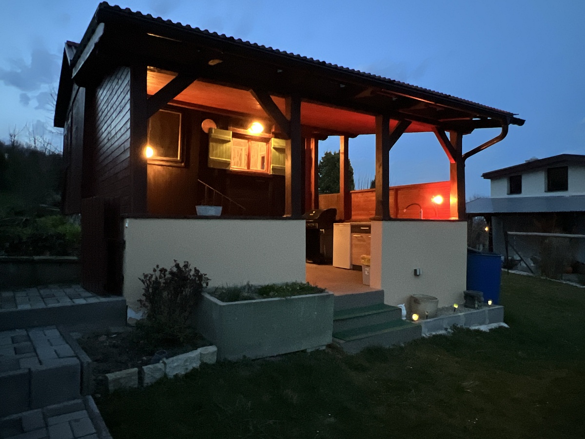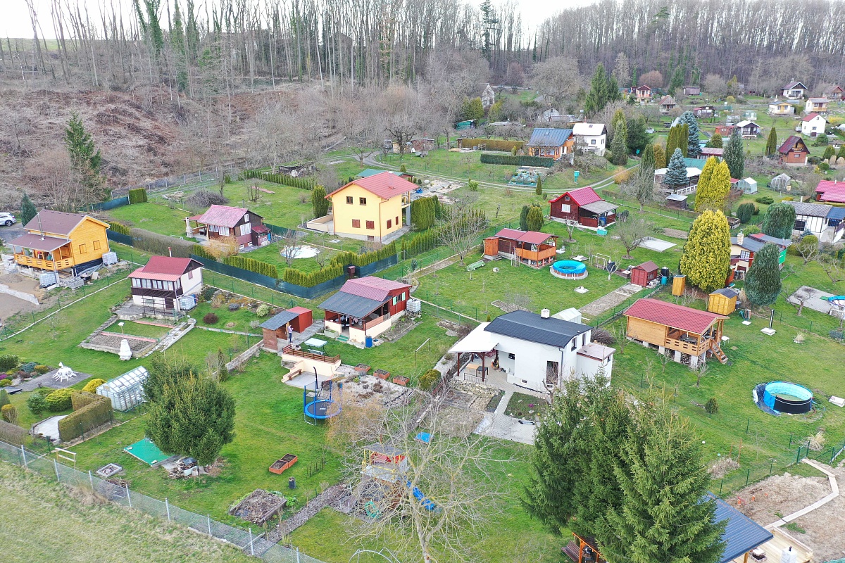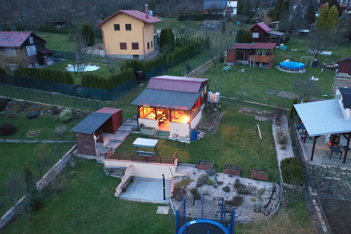 Na zahradě je pěkné připravené místo na strávení klidných teplých dní. Je zde místo pro bazén nebo vířivku, venkovní sprcha, ohniště. Celá kolonie je oplocená. Příjezd automobilem je možný nedaleko chaty.