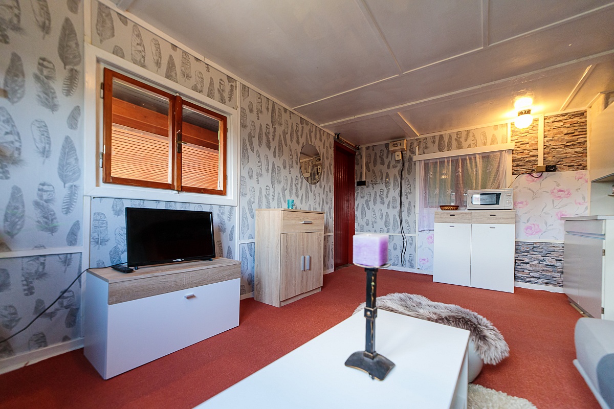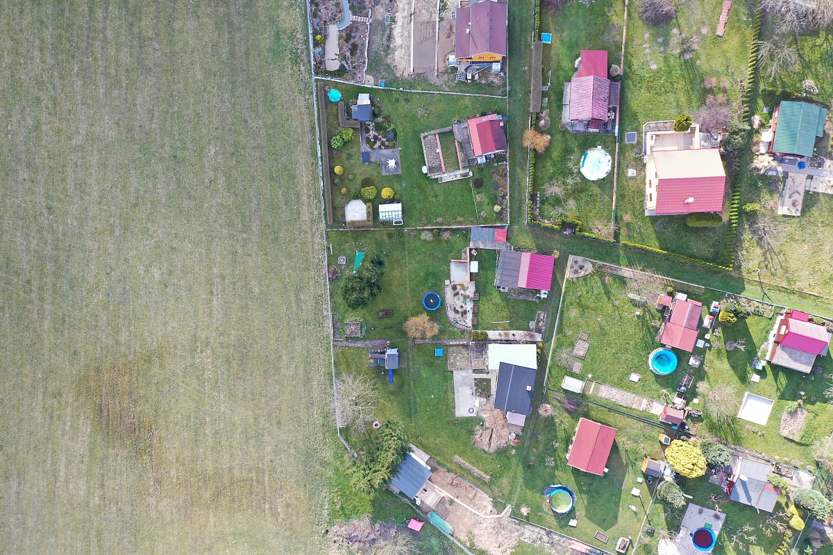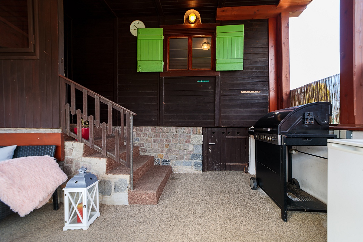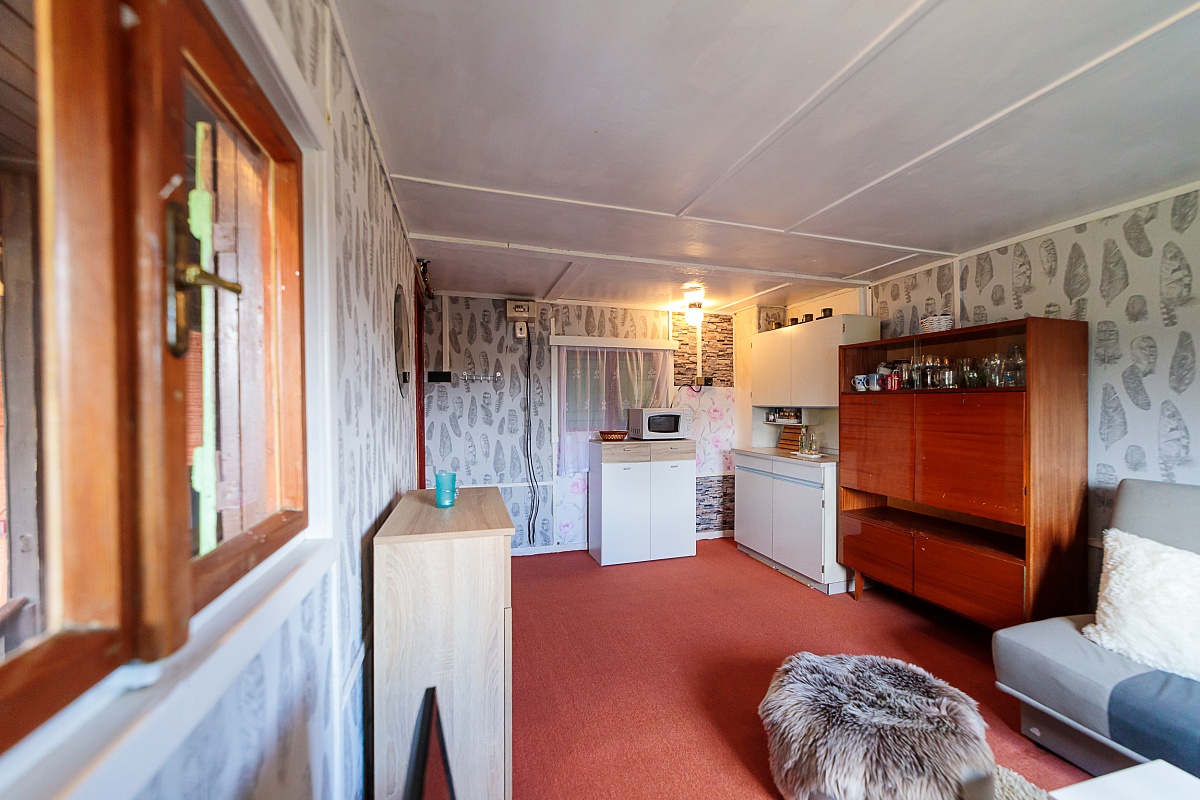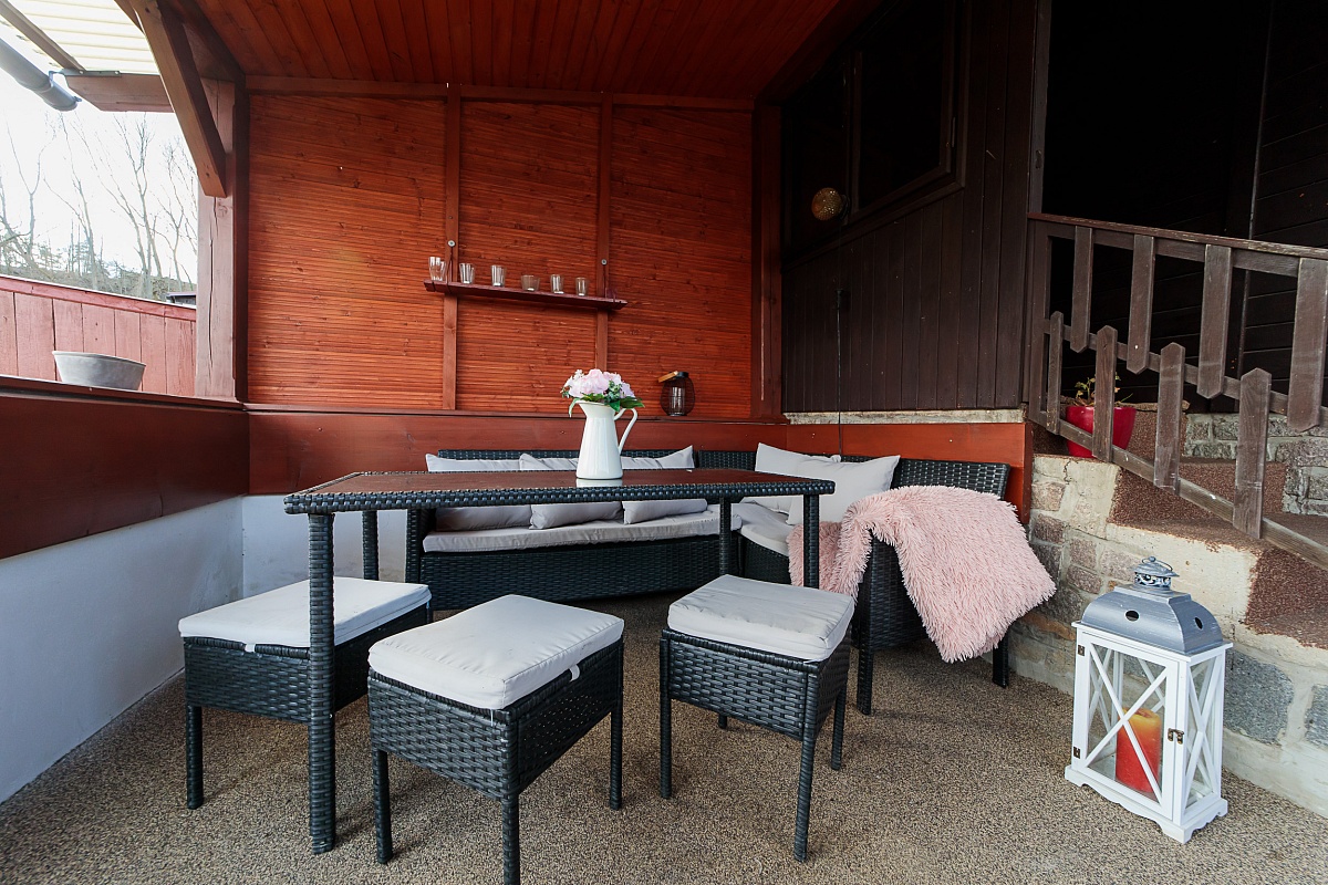 Na zahradě je pěkné připravené místo na strávení klidných teplých dní. Je zde místo pro bazén nebo vířivku, venkovní sprcha, ohniště. Celá kolonie je oplocená. Příjezd automobilem je možný nedaleko chaty.