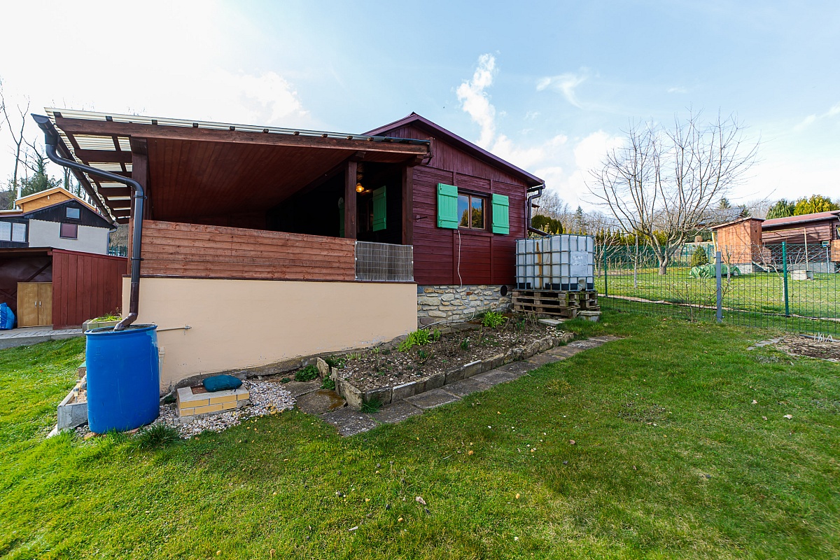 Chata je dřevěná na zděnné podezdívce. K chatce náleží nová terasa, která byla přistavěna roku 2019. Celková zastavěná plocha pozemku je 35 m2. V chatce se nachází jedna obytná místnost, na terase je pak posezení, kuchyňská linka, lednice a gril. Pod chatou je menší sklep (2,5 x 2 m). Celkové výměra pozemku je 601 m2. U chaty se nachází dřevník a chemické WC. V případě potřeby jsou i 50 metrů od chaty společné záchody.