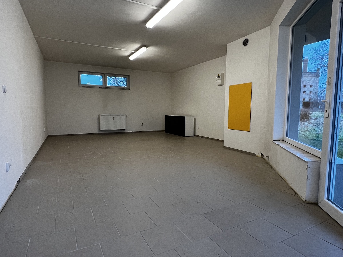 Prostor je tvořen z jedné místnosti, která má výměru 38 m2. Podlahová krytina je dlažba, okna a dveře jsou plastová. Vytápění je ústřední vlastní kotelnou která je v domě. Je zde zavedena elektřina 230 V. Topení je ústřední s termoregulačním kohoutem a samostatným odečtem na každém radiátoru. Z boku prostoru vedou stoupačky teplé a studené vody a odpadu. Tudíž lze napojit na vodu a odpad. Kolaudace v roce 2017. Vstup jsou plastové dveře a dvě velké výlohy.