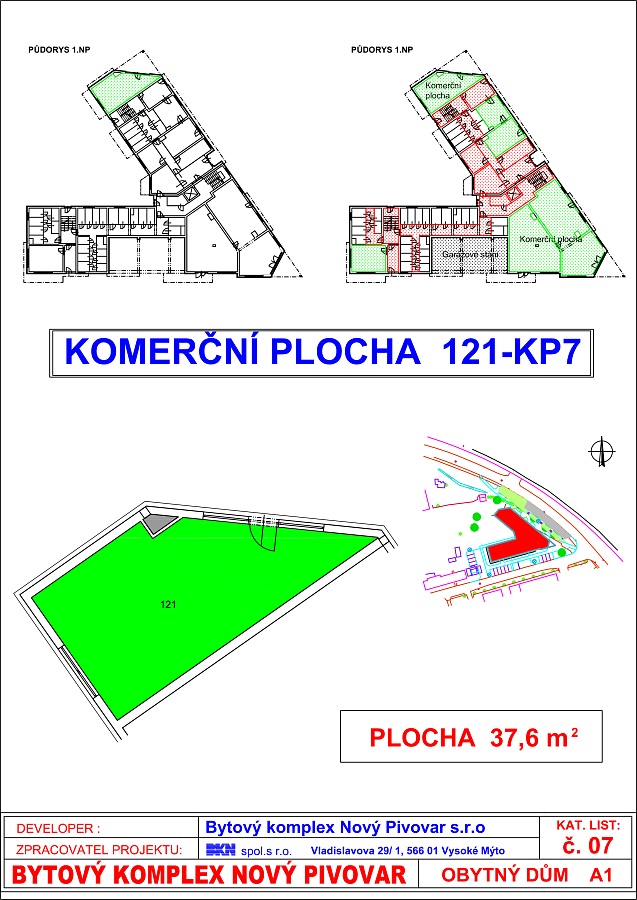 PRODÁNO Nabízím Vám k prodeji pěkný rohový komerční prostor v přízemí bytového komplexu Nový Pivovar, který má vlastní vstup přímo z ulice. Prostor je v přízemí a nachází se na adrese Mánesova 145 ve městě Vysokého Mýta.