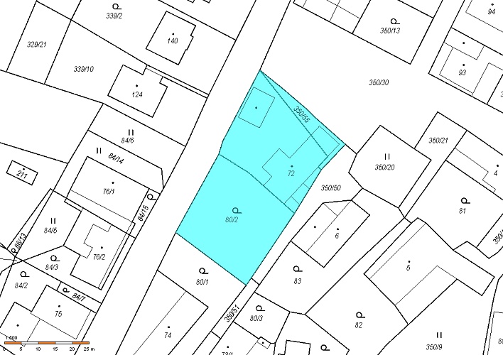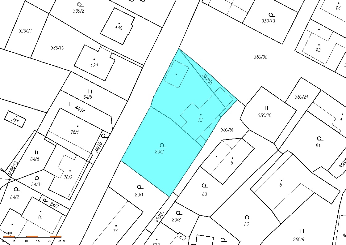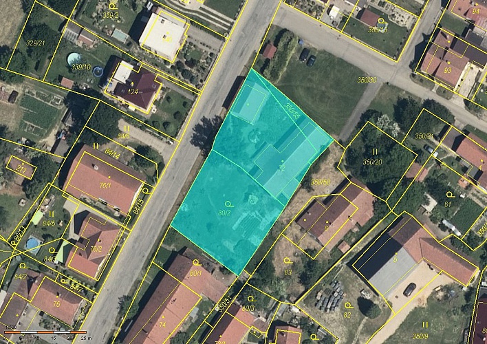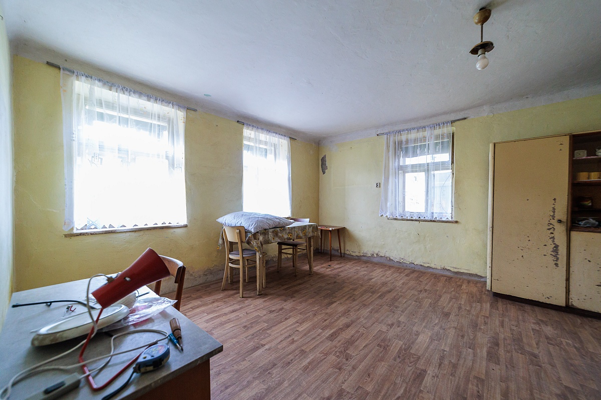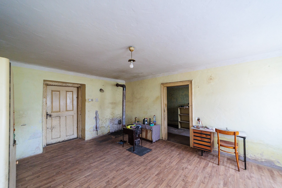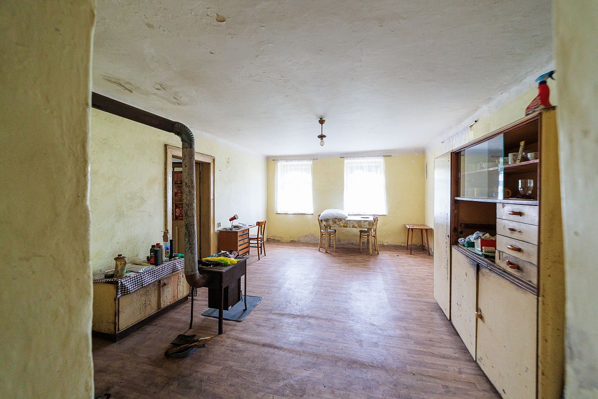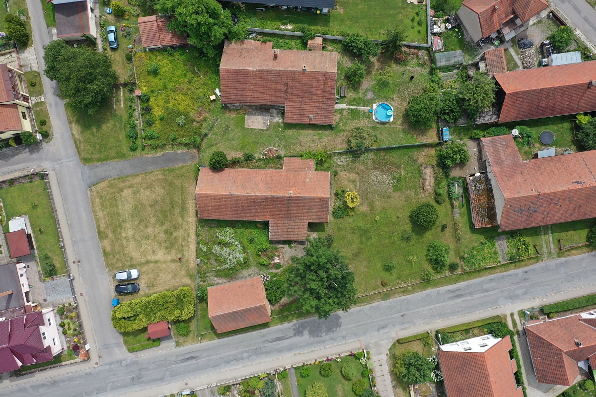 Tato nemovitost nabízí rozsáhlý pozemek o celkové ploše 1487 m², který zahrnuje zastavěnou plochu 230 m² a prostornou zahradu o rozloze 1257 m². Součástí pozemku je původní přízemní zděný dům s půdními prostory, který sice vyžaduje rekonstrukci nebo demolici, ale skýtá velký potenciál pro nové stavební projekty. Dům disponuje dvěma obytnými místnostmi, obývacím pokojem a kuchyní. Dům má sedlovou střechu a ta je pokryta taškami.