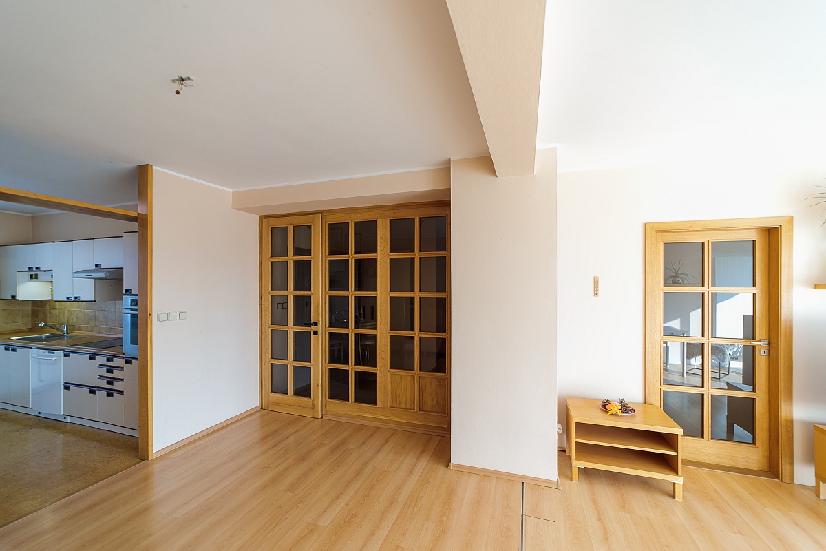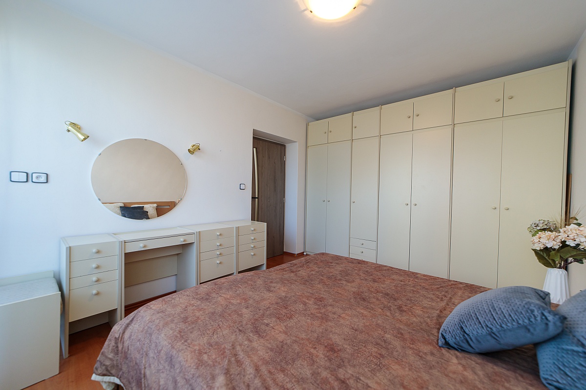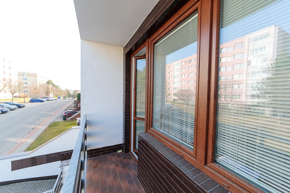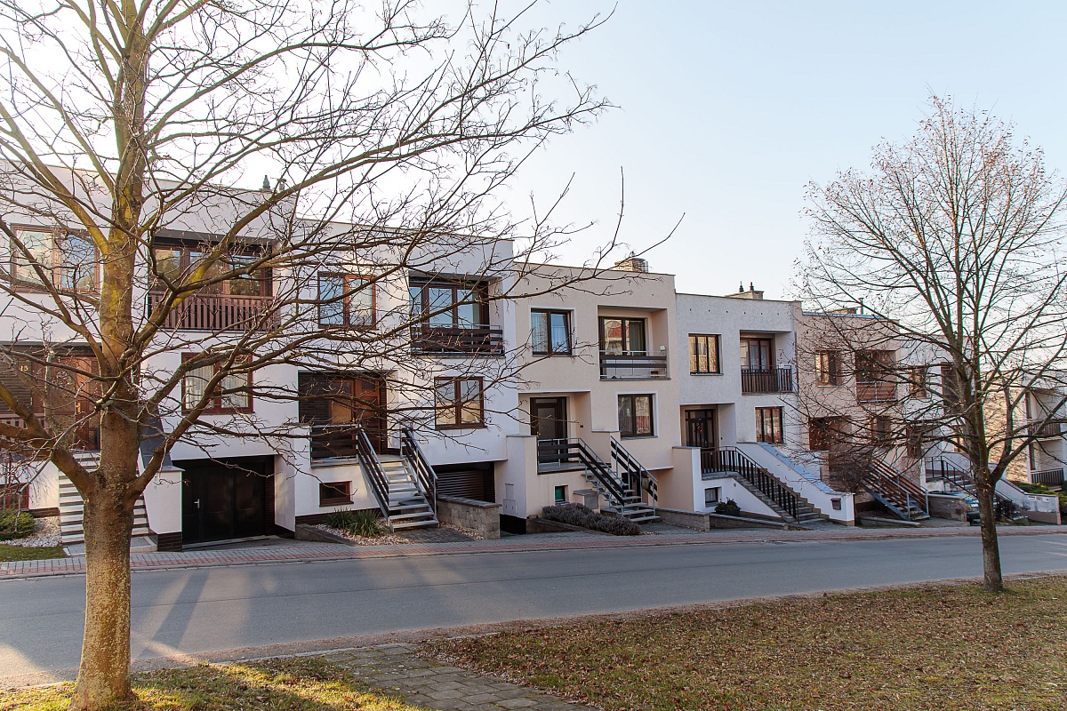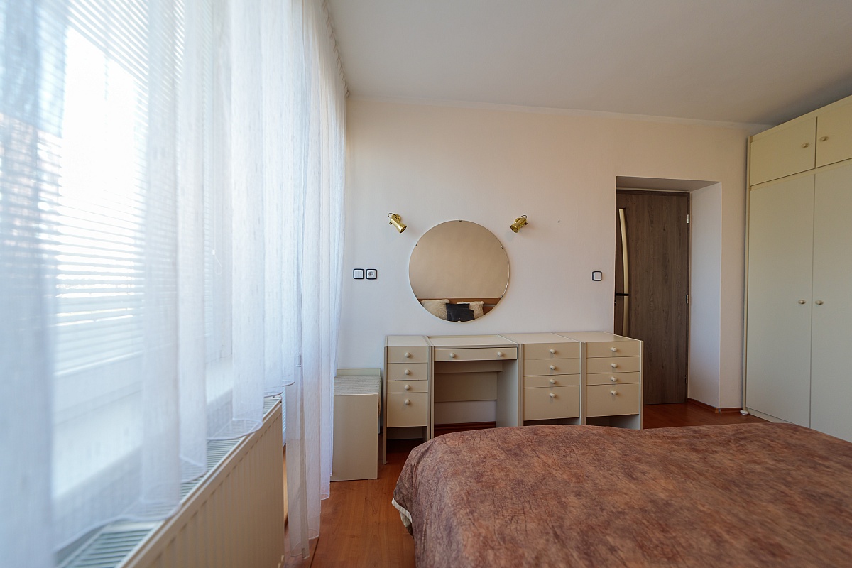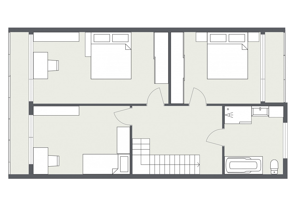 V patře se pak nachází tři obytné místnosti, všechny s přístupem na balkóny a koupelna. Koupelna je vybavena sprchovým koutem, vanou, umyvadlem a záchodem. Všechny místnosti mají jako podlahovou krytinu plovoucí podlahu nebo koberec, v koupelně je dlažba. Místnosti mají nové obložkové dřevěné dveře.