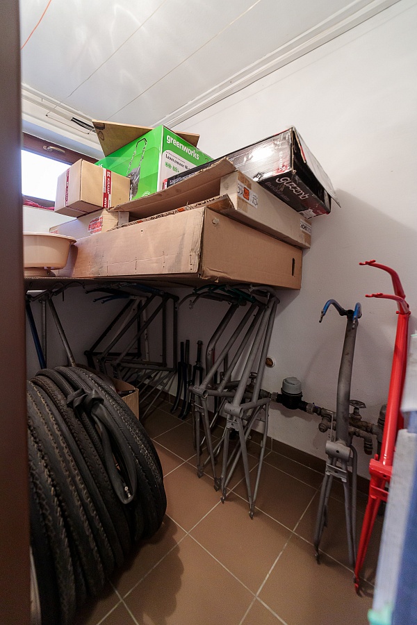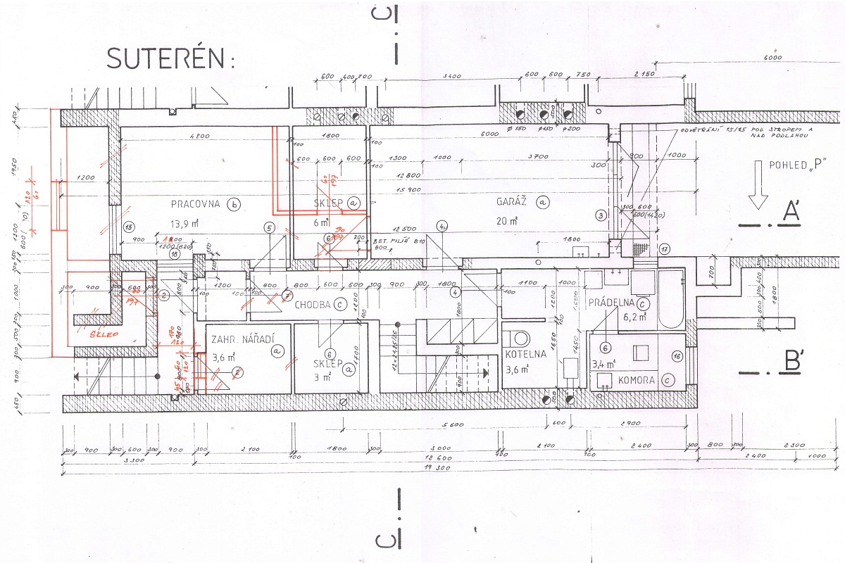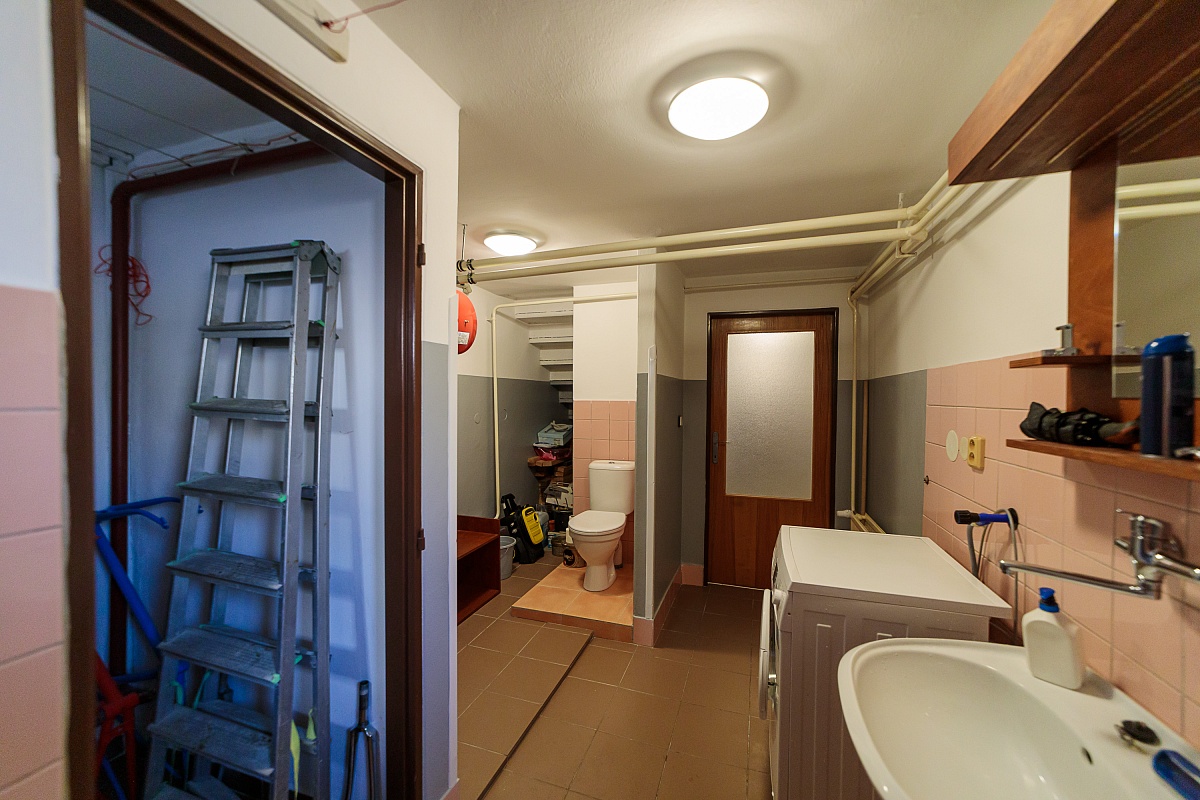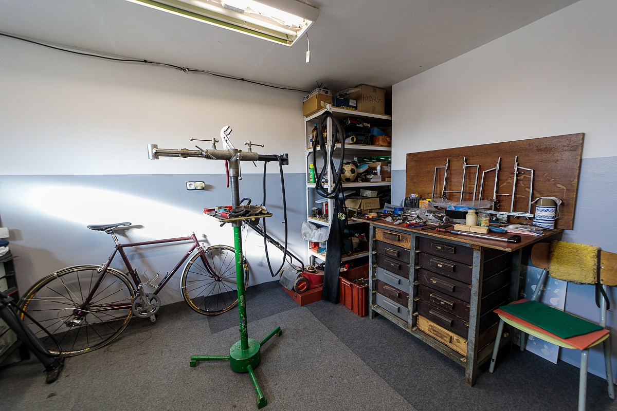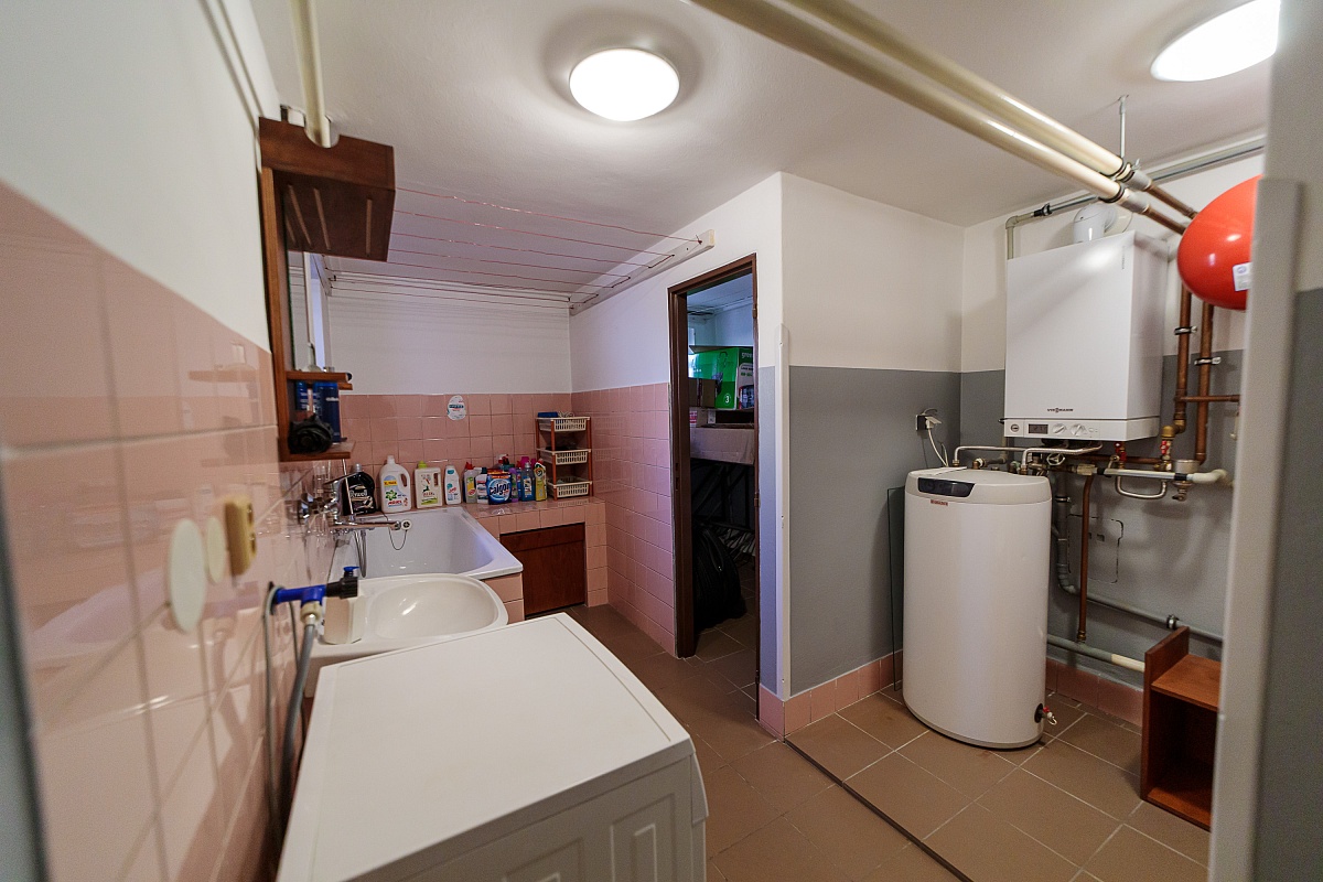 V suterénu domu se nachází garáž s elektrickými garážovými vraty na dálkové ovládání a dílna, oddělená od garáže příčkou a regálem. Dále se v suterénu nachází technická místnost, prádelna, WC, sklep a východ na zahradu, u kterého je ještě jeden sklep s vchodem zvenčí.