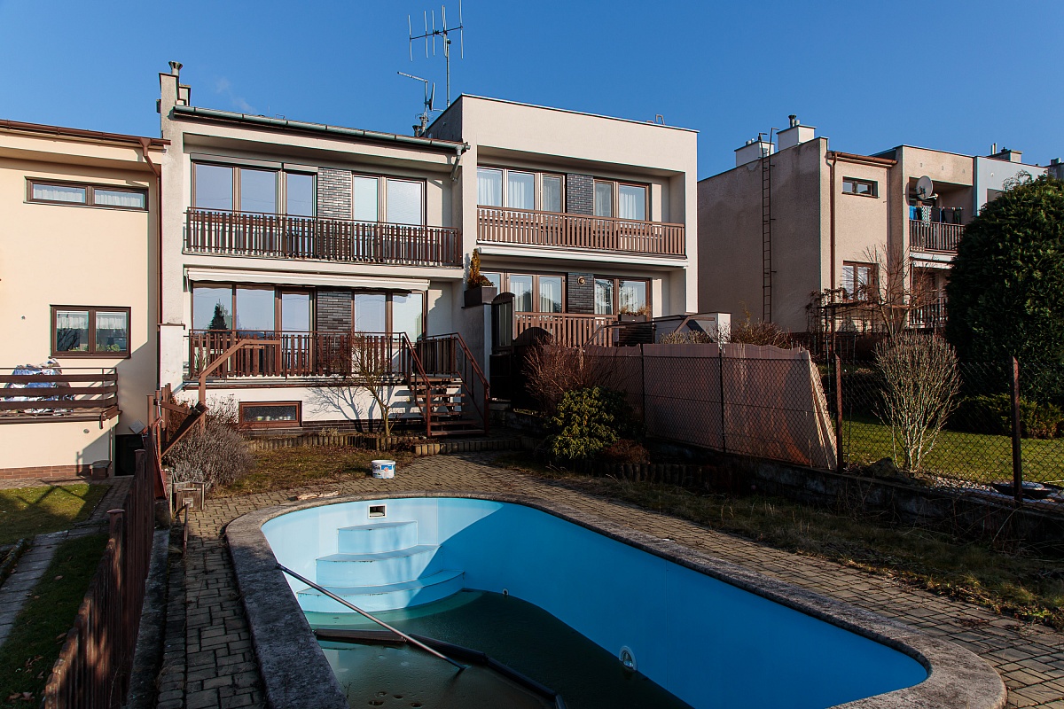 REZERVACE Prohlídkový den je v úterý 14.3. Nabízím k prodeji řadový rodinný dům v klidně lokalitě V Peklovcích ve Vysokém Mýtě. Rodinný dům 5+KK má dvě obytné podlaží a suterén s garáží. Z terasy je vstup na zahradu se zapuštěným bazénem a zahradním domkem.