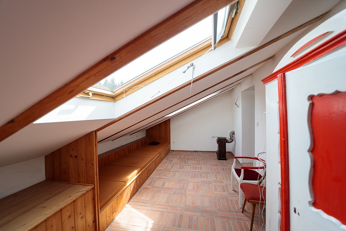 2. NP: tři obytné pokoje, koupelna a chodba, vše v započaté rekonstrukci, a nezabydlené půdní prostory.