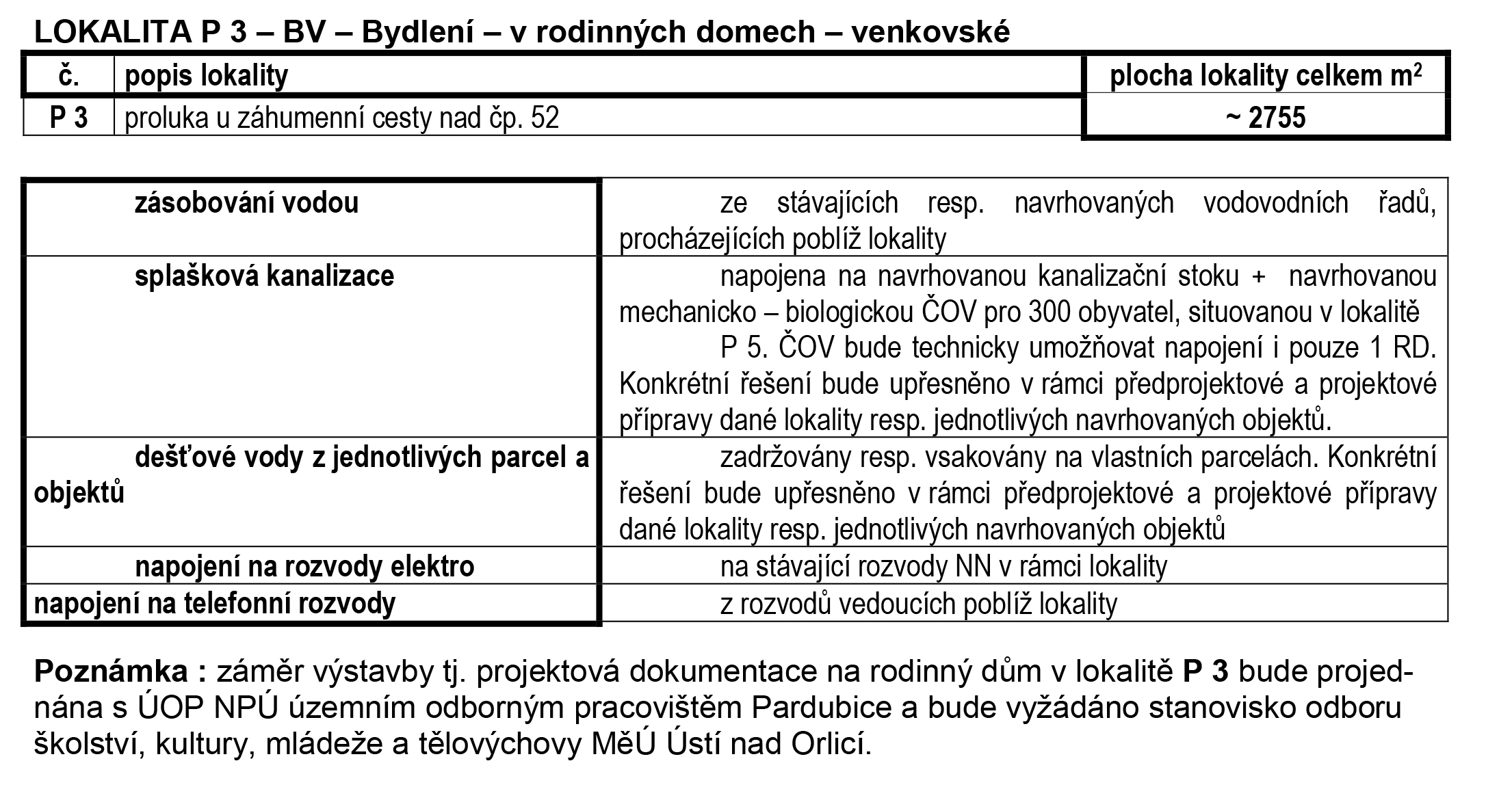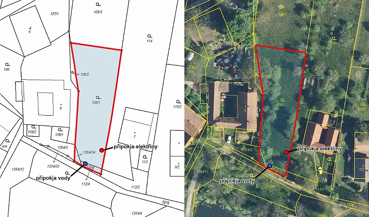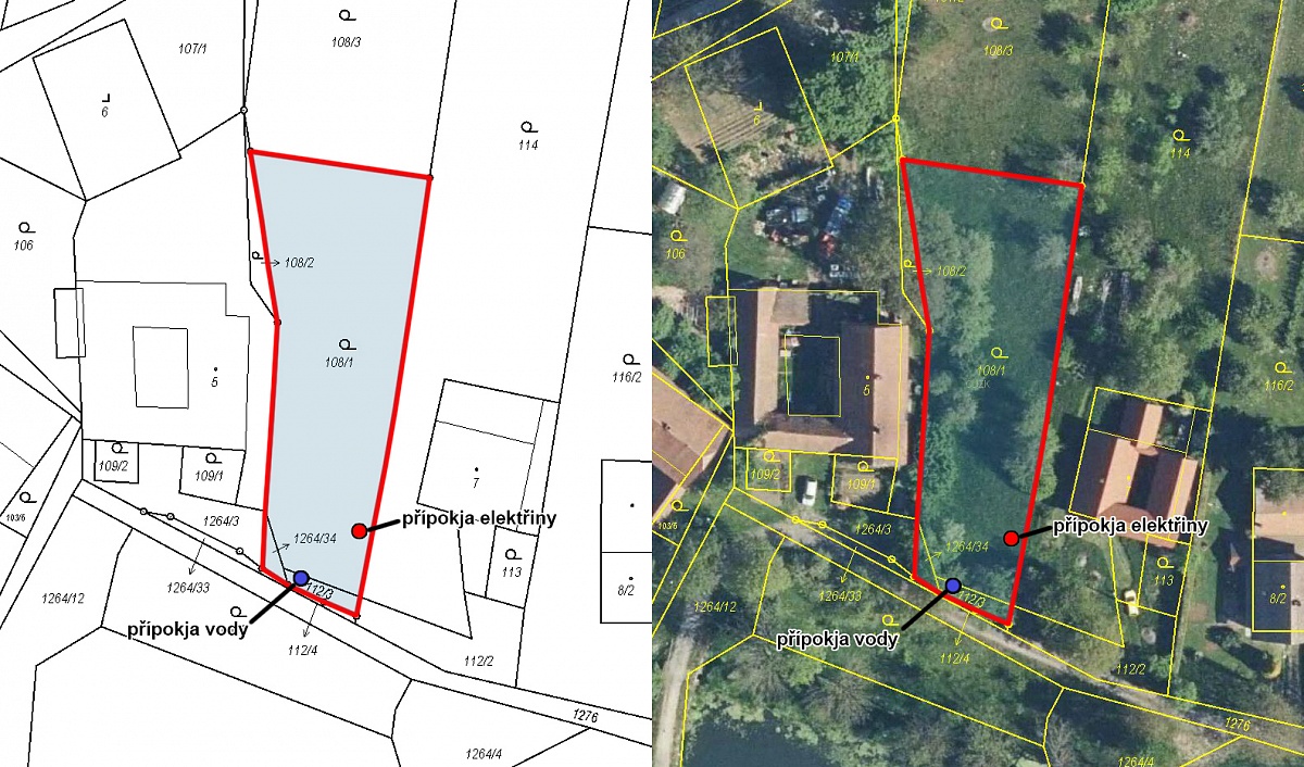 Pozemek je přibližně obdélníkového tvaru, orientovaný na jih, s rovinatým až mírně svažitým terénem. V územním plánu je pozemek určen k výstavbě rodinného domu vesnického typu. Ten může být využíván buď k trvalému bydlení nebo k rekreaci. Na pozemek je přístup z nové veřejné asfaltové komunikace vedoucí okolo rybníku. Vodovod a elektrické vedení procházejí v těsné blízkosti parcely. Za jasného počasí je za humny vidět Sněžka.